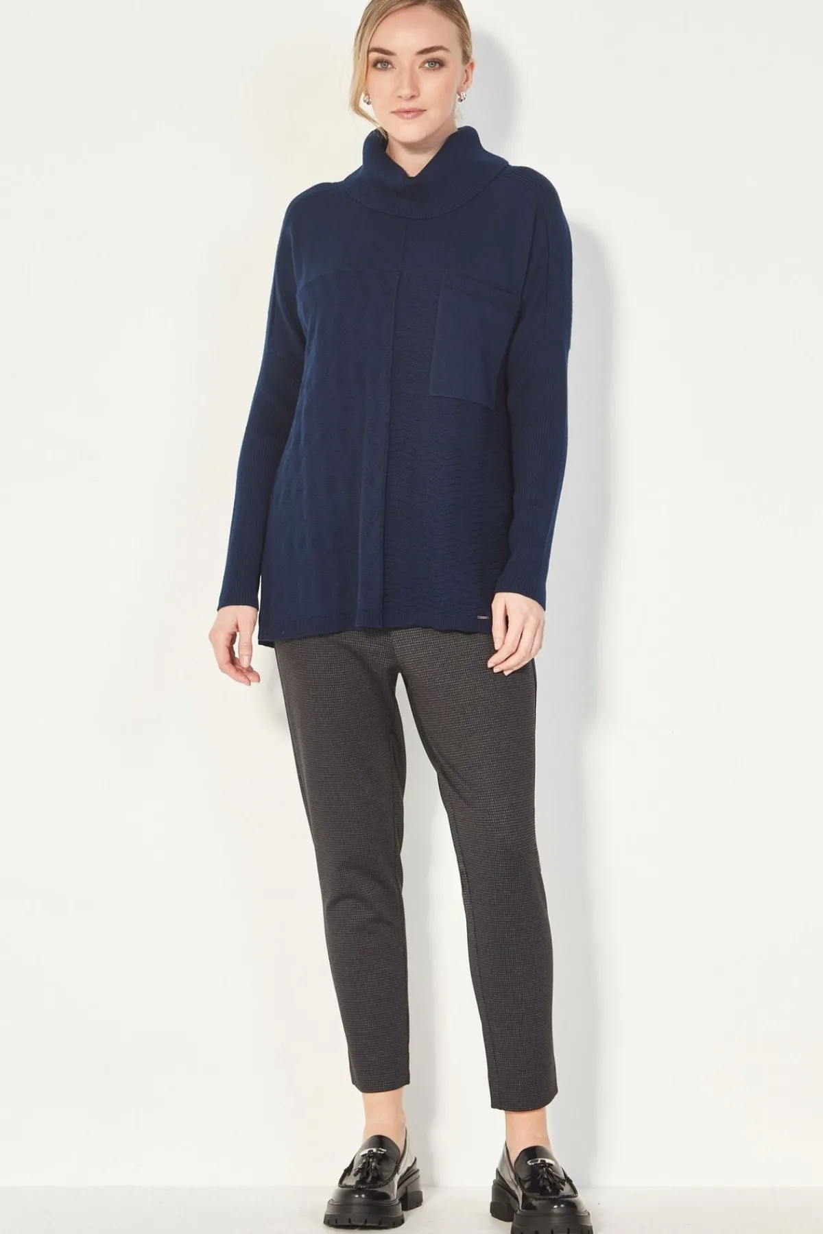 Expertly crafted with Printed Deluxe Ponte fabric, the Justice Pant offers a sleek and slim leg design for a stylish winter look. The pull-on pant boasts a Basque waist for a comfortable and effortless fit, and the full length provides maximum coverage. Subtle Grey/Blue check fabric.