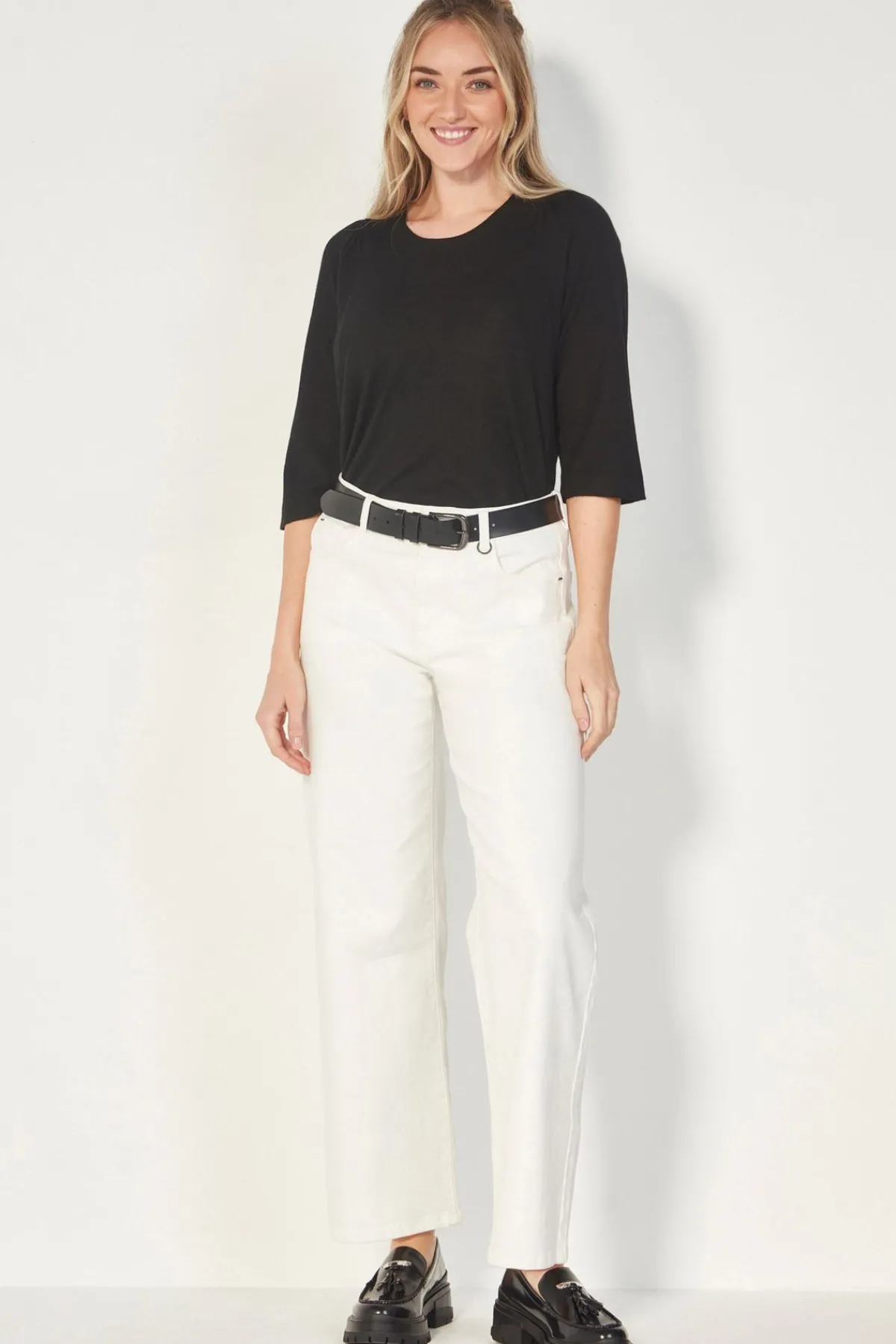 The Zoe top is crafted from premium extra fine 100% Merino wool and features a ribbed scoop crew neck and elbow length set in sleeves. Designed to sit at the hip, it offers both comfort and style. Experience the benefits of high quality wool with this versatile top. Extra fine 100% Merino. Scoop crew neck. Elbow length sleeve. Designed to sit at the hip.