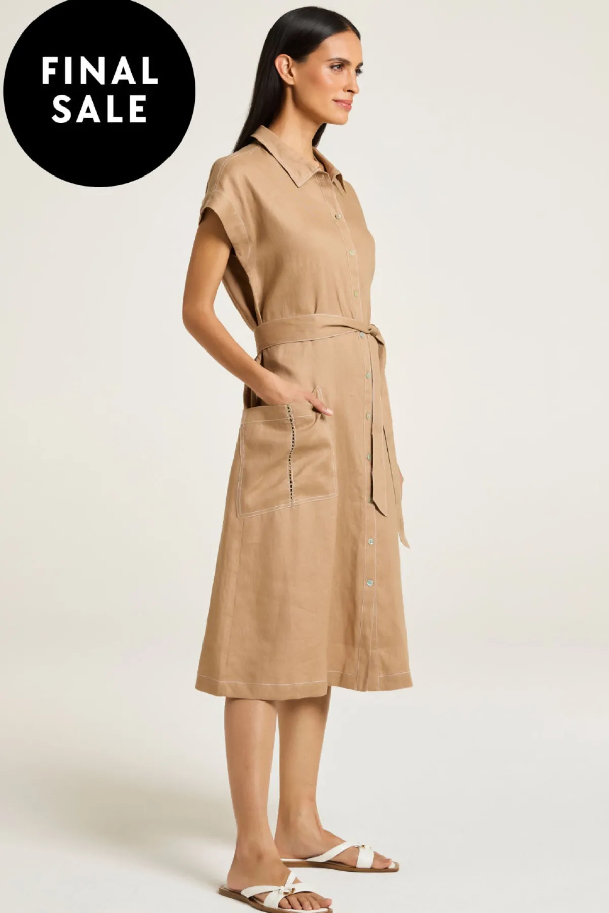 Meet the Atlas Dress, crafted from 100% linen for a fresh, timeless look. It features a shirt collar, oversized patch pockets with ladder trims, and contrasting stitching. With functional waist ties and a bow notch at the back, you can wear it relaxed or tied for a more fitted look. Ideal for any season!