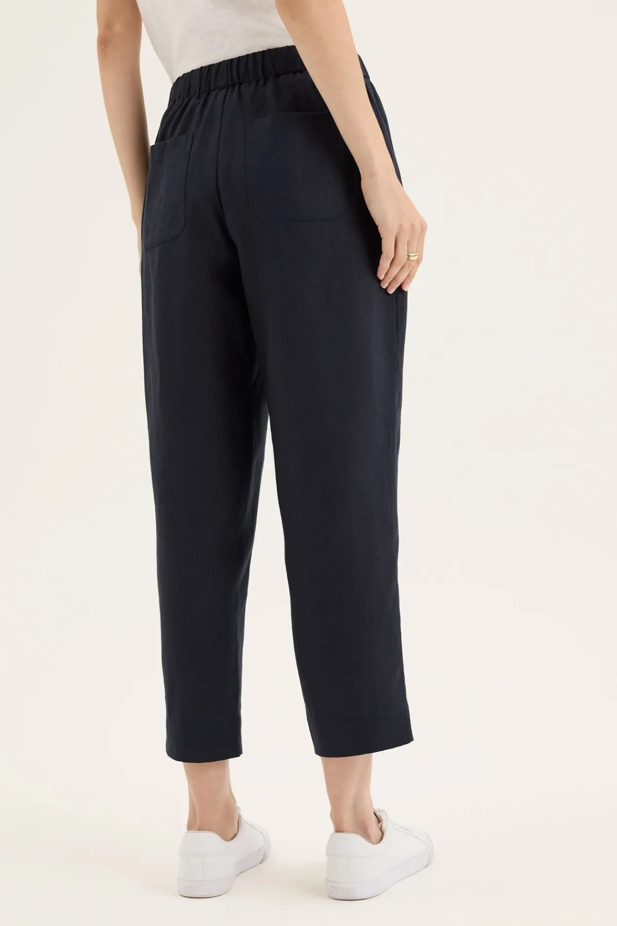 The Tirari Slim Pant is crafted from 100% premium European Flax linen and designed for effortless, everyday wear. Part of Yarra Trail’s signature Tirari range, it combines natural breathability with thoughtful design details. The pull-on waistband is fully elasticated and finished with a herringbone drawcord for a comfortable, adjustable fit. Front design panels and functional welt pockets add a clean, tailored feel, while back patch pockets offer practical finish. Cut in a slim silhouette with a 7/8 length, this is the kind of pant that balances structure and ease – perfect for warm-weather dressing, whether styled casually or polished with more from our linen range.