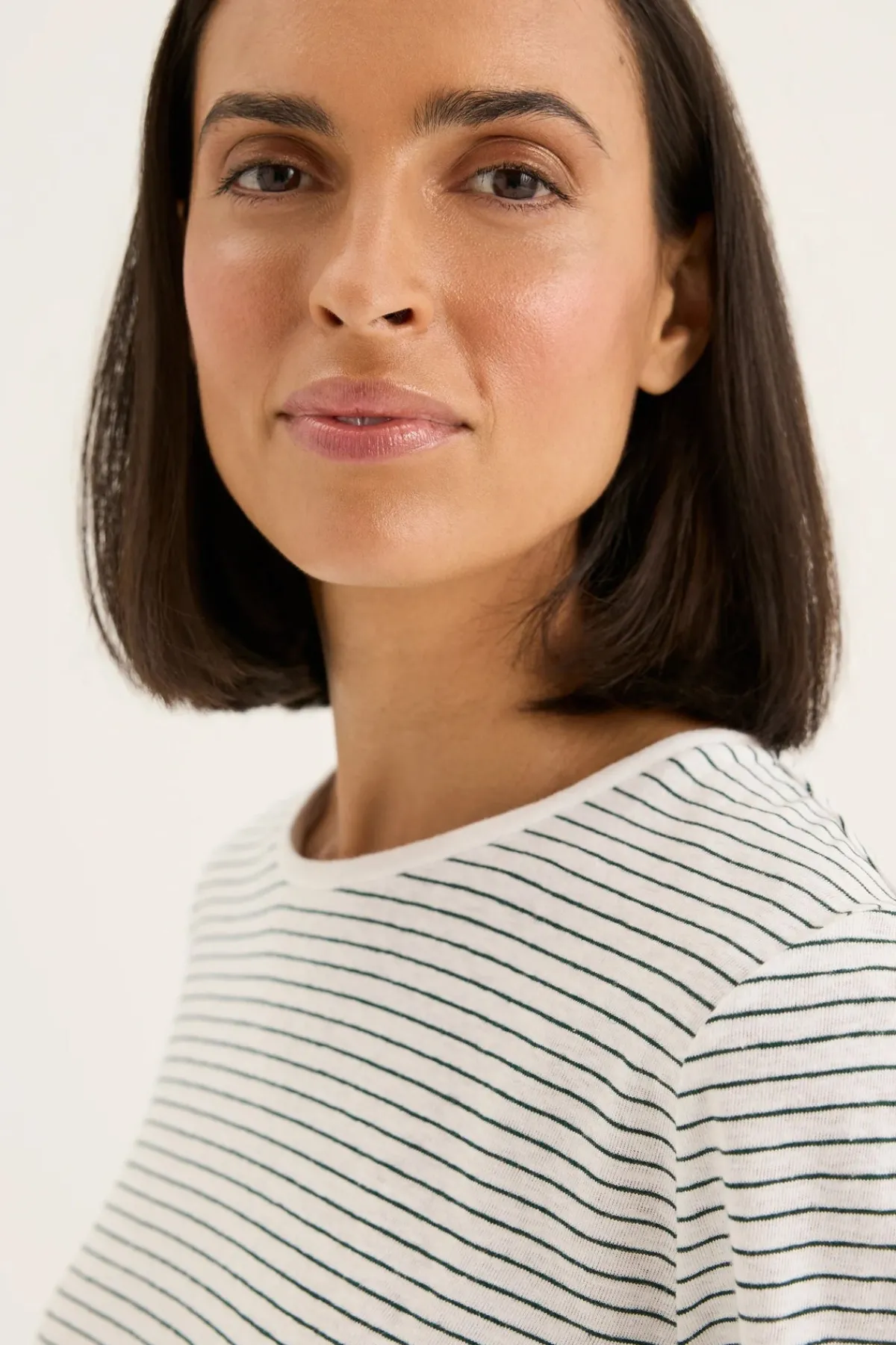 Made from quality fabric blends of Linen and Cotton, the Mirage Tee offers a dressier essential rather than a classic one with its adorned slender stripes. Finishing around hip length in a regular fit, it also features a round neckline and long sleeves that ensure sleek and timeless aesthetic. Effortlessly paired with any anything in your wardrobe this tee will be on constant repeat throughout seasons.