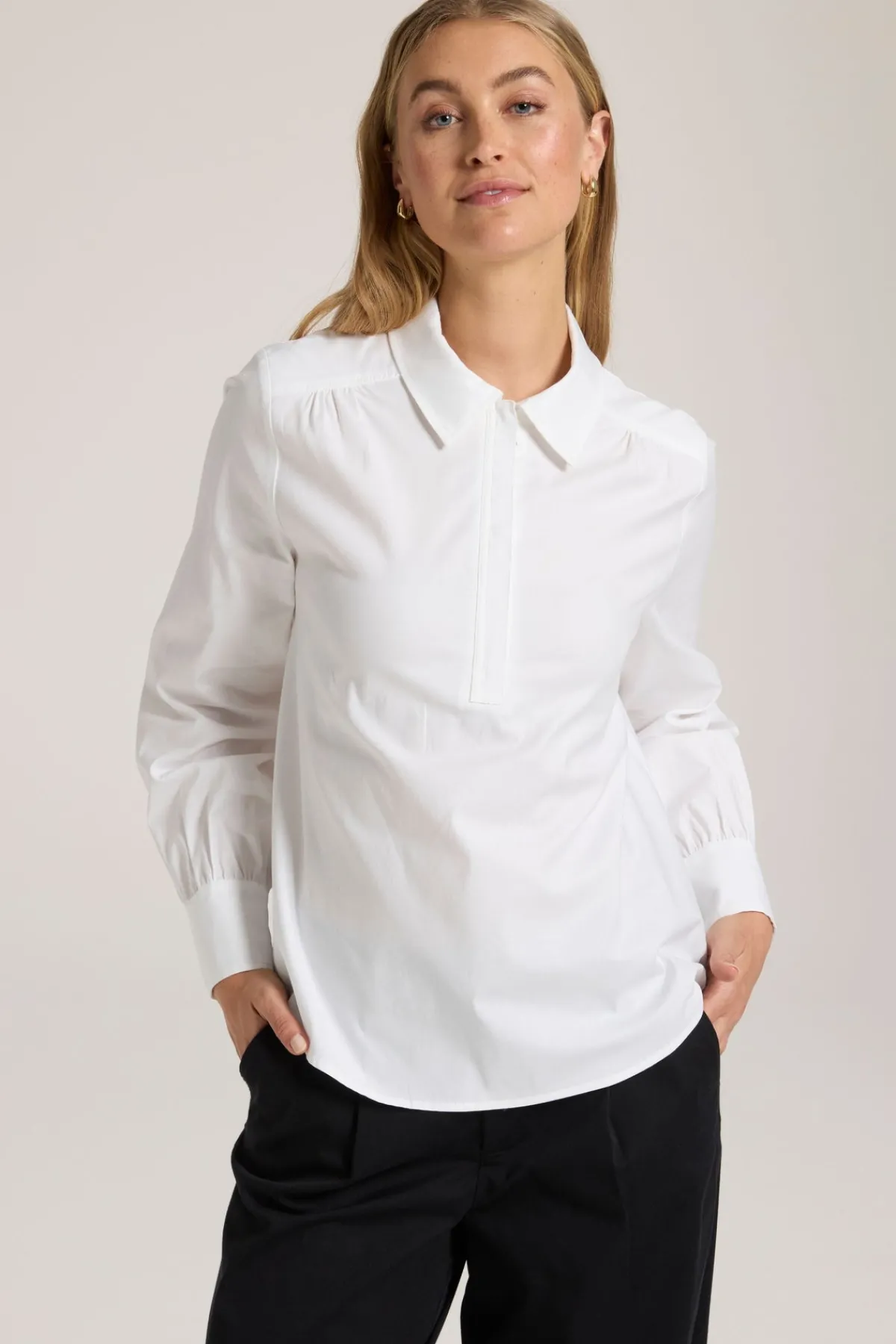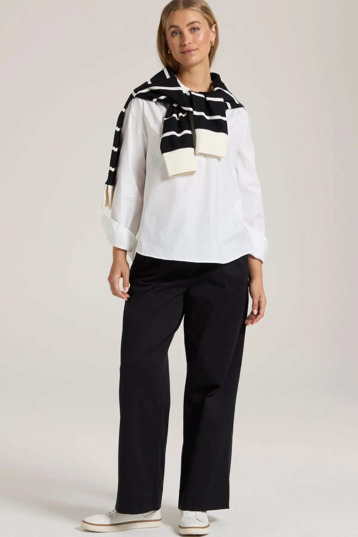 Indulge in the elegant and sophisticated style of Yarra Trail’s EARTHLY TOP. This must-have for autumn/winter features a 1/2 zip front and is crafted from stretch cotton, making it perfect for everyday wear. Elevate your wardrobe with this update to the classic white shirt.