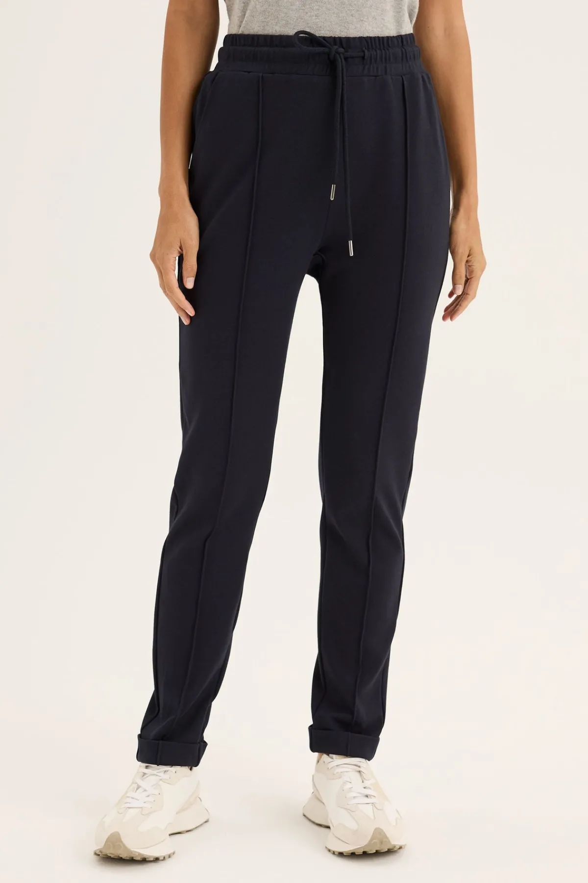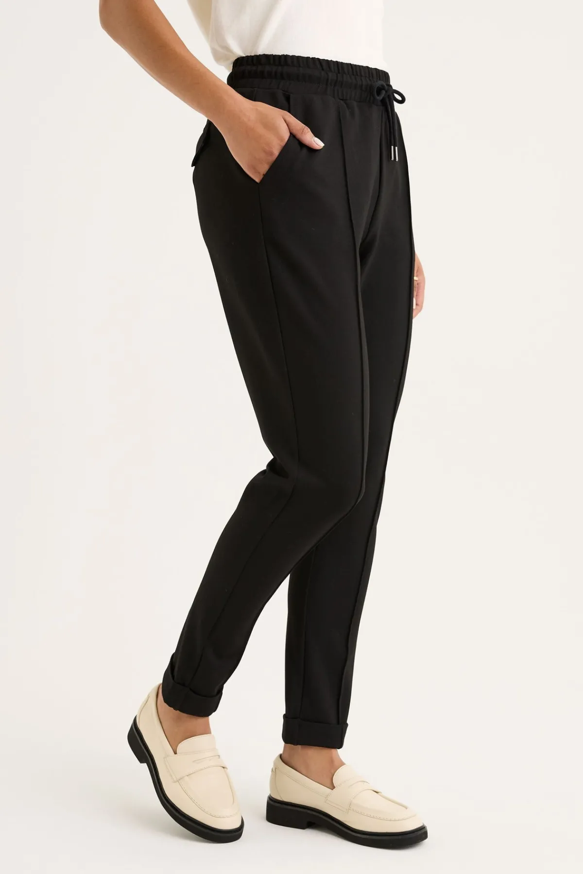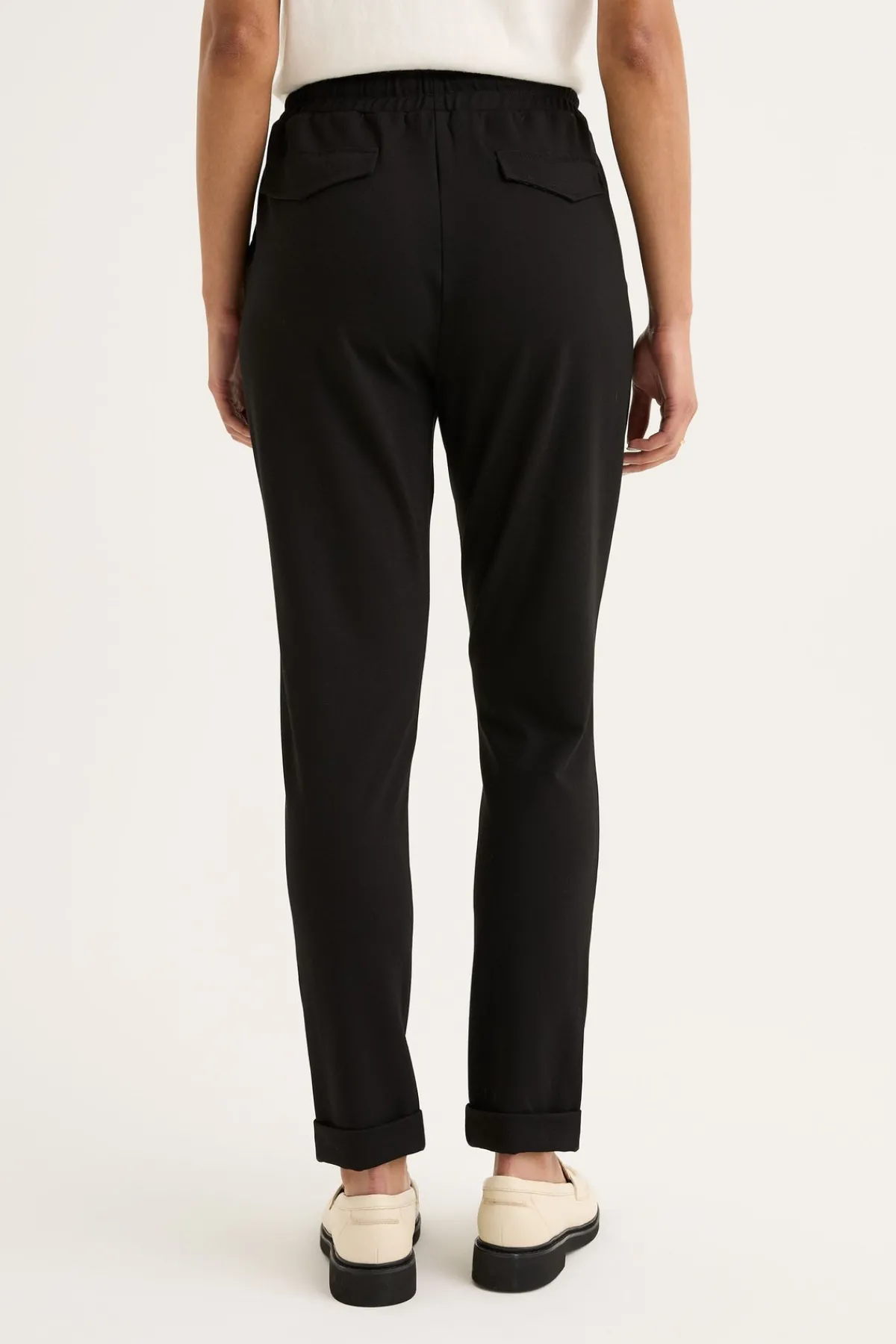The Vine Jogger combines comfort and style with its elasticated waistband, offering a secure and flexible fit. It features functional front slant pockets for practical storage, along with mocked back flap pockets for added detail. The turned-up hem gives the jogger a trendy finish, while the easy fit silhouette flatters the figure. With a full-length cut, this jogger is perfect for creating a sleek, comfortable look that can easily transition from casual to more polished outfits.