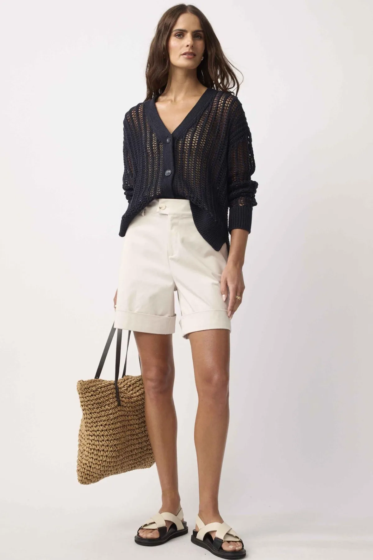 The Nova Short is a timeless warm-weather staple, crafted from Yarra Trail’s signature stretch chino for a soft hand feel with lasting structure. Designed with a straight fit and thigh-length cut, it features a tailored waistband with belt loops and a front fly with button closure for a polished finish. Functional cut-away pockets at the front and neat back pockets add everyday practicality, while the wide turned-up hem brings a clean, contemporary edge. Comfortable yet refined, this short is designed to move easily between casual weekends and more elevated summer outfitting.